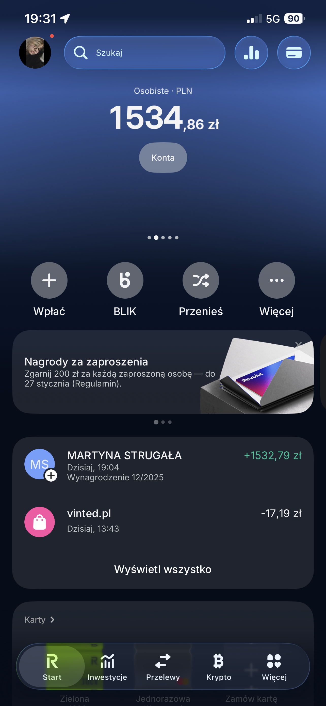 wypłaty dostałam wczoraj 1150 zł dzisiaj dostałam 1500 co daje 2 650.