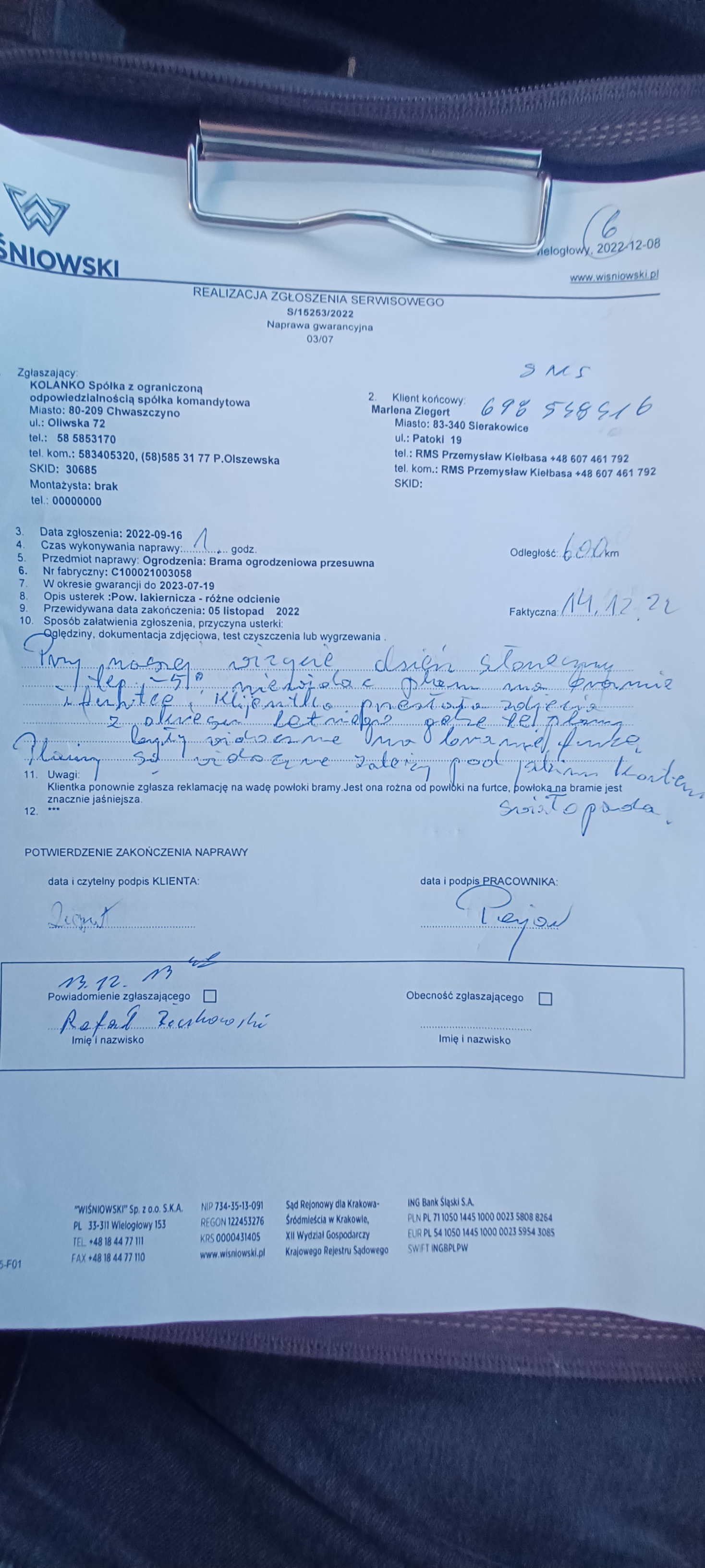 Kupiłam ogrodzenie w 2021 roku i po roku złożyłam reklamacje i oni ja odrzucili na podstawie pisma z zalacznika. Gdzie serwisant stwierdził że plamy widać. I tak co roku składam reklamacje bo ogrodzenie wygląda tragicznie. Co mogę e tej sytuacji robic