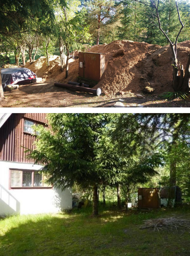 Przesyłam zdjęcia szafy rozdzielczej: 1. w czasie budowy szamba; 2. obok budynku.