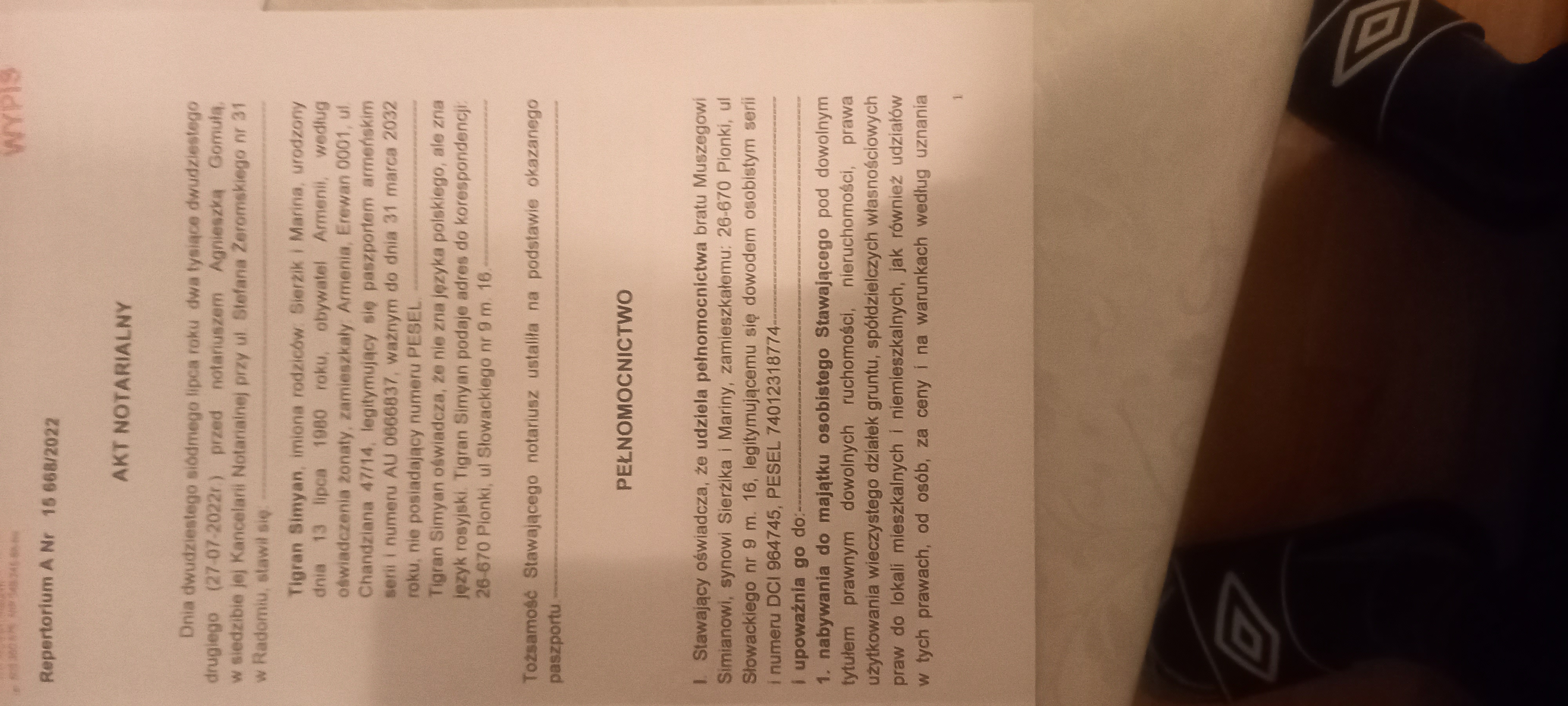 Dlatego odpowiadając wprost: na podstawie samych pokazanych stron – jest duże ryzyko, że notariusz odmówi sporządzenia aktu sprzedaży, uznając, że brakuje wyraźnego umocowania do zbycia. Co do „zaakceptowania przez dowolnego notariusza”: jeśli dokument jest jednoznaczny i obejmuje sprzedaż, powinien być przyjmowany, ale przy niejasnościach praktyka bywa różna.