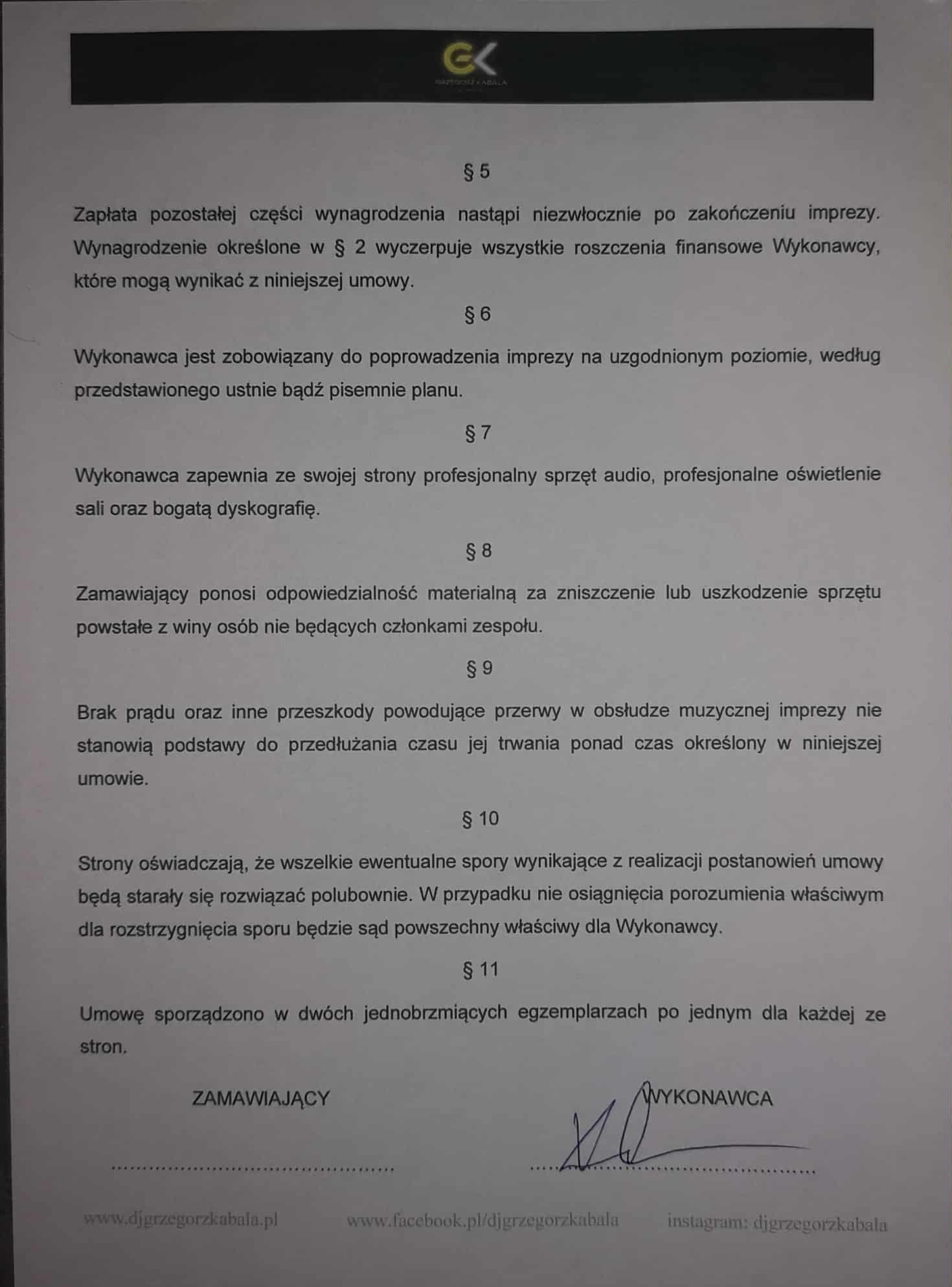 Czy da się odzyskać pieniądze?Tak – jeżeli dojdzie do niewykonania umowy z winy DJ-a albo jeśli już teraz widać, że realnie nie zamierza jej wykonać (np. double-booking + brak kontaktu). Co do zasady, przy zadatku działa art. 394 k.c. (przy winie wykonawcy możecie żądać sumy dwukrotnie wyższej), ale u Was umowa wprost przewiduje zwrot zadatku przy braku możliwości przyjazdu DJ-a – to może ograniczać roszczenie do „oddania 1500 zł”, choć w części przypadków da się dyskutować, czy takie ograniczenie wobec konsumenta nie jest abuzywne (zależy, czy to wzorzec i jak było uzgadniane). Podstawa o zadatku: art. 394 k.c. – znaczenie zadatku.